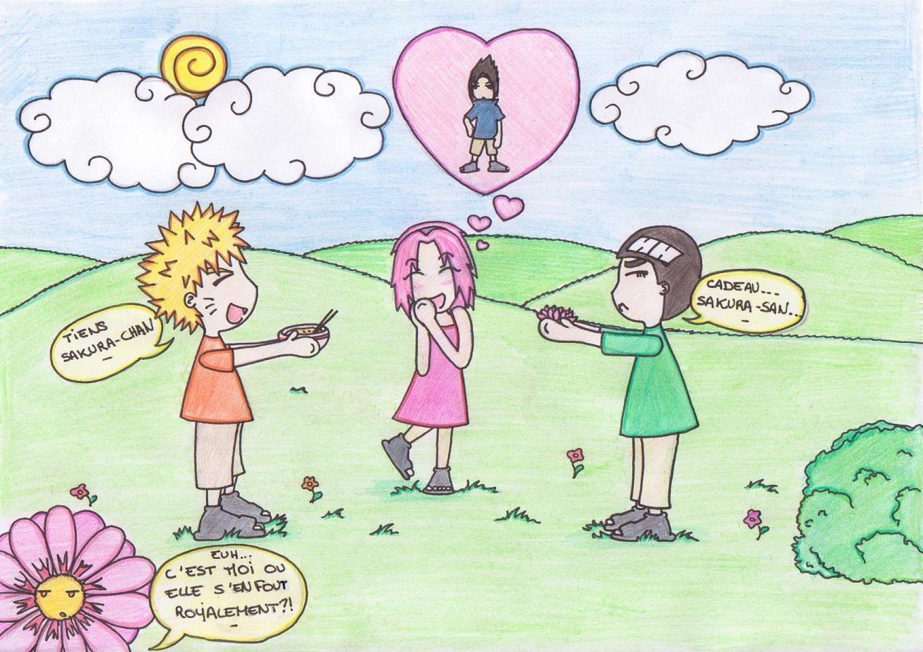 | Nan c'est pas toi, elle s'en fout vraiment royalement xD Je pense pas que Lee finisse avec Sakura xD, mais c'est beau d'espèrer Lee! "La Fougue de La Jeunesse >-<" 10/10 x3 |