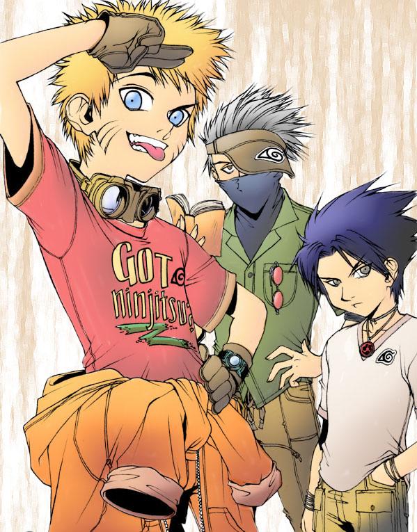 | tes couleurs sont fabuleuses et les poses decontracter ossi. j'adore le kakashi avec visiére et le sasuke avec ses fringues |