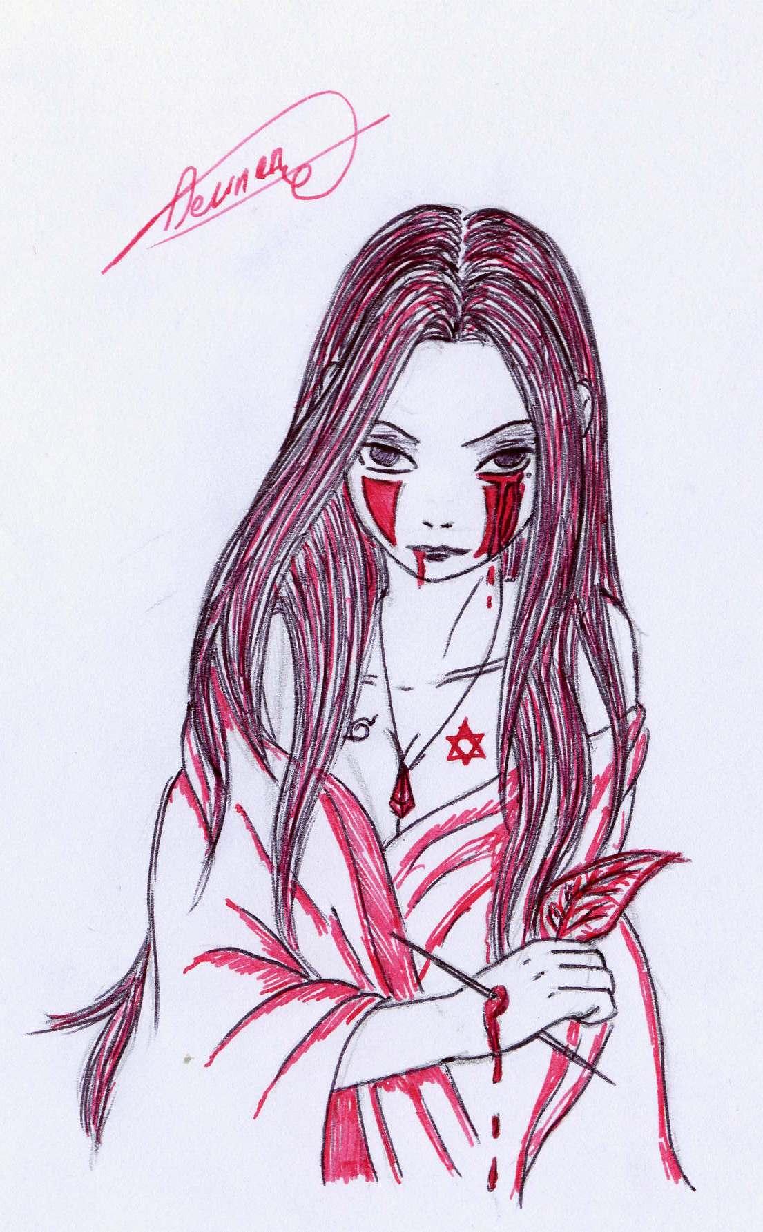Moyens utilisés: Critérium, Stadler, Encre rouge, Encre de chine Personnages: Sahron Okamira (Invented) |