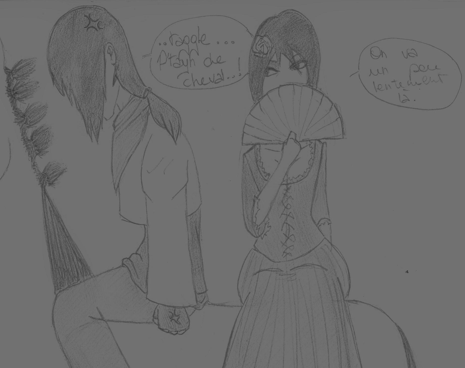 Un p'tit tripe avec Ita' XD En attendant la moto hein? ;) >w< Donc voila, ça c'est le dessin de départ, la colo et la mise au "propre" vont arriver. Hey, soit pas jalouse Hina', c'est pas mon but =X C'est juste un trip' qu'on c'est taper voila ^^ J'pas envie d'mourir hein >_>' Voila :D J'pas eu le temps de faire les ombres p'tayn x_x Plus de Fanarts de: Konan, Uchiwa Itachi |