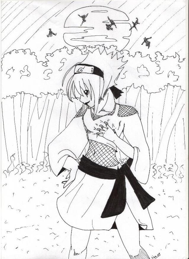 C'est un personnage inventée que j'ai déssinée aprés avoir lu le 1er tome de naruto^^ |