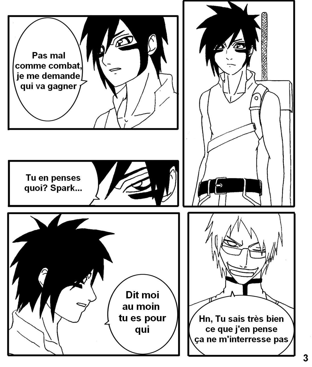 Et voici la page 3!^^ bon, la deux nouveau perso. Moi avec les genres de tatouages sous les yeux, et Spark(~_Pride_~). |