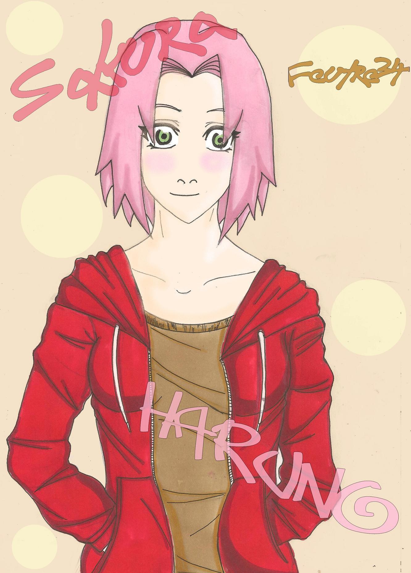 Voici encore et encore une Sakura, Faite en environ 1 heure + retouchée à l'ordi pour le fond. Coloriser aux promarkers comme d'habitude :) Plus de Fanarts de: Haruno Sakura |