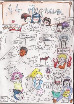 Bon alors voilà, c'un dessin en l'honneur de notre clan d'amuuuuuuur et d'eau fraiche : .44 Magnum, vous l'aurez compris. C'est limite un brouillon, vu la propreté du truc, et c'pas vraiment une "prouesse" à critiquer >< Mal proportionné, perspective zéro, défauts MEGA apparents, SD pourri.. xD Mais c'un dessin qui vient du coeur, que j'dédie à mes brebis. <3 Au fait, si vous pigez que dalle, c'normal ! Remarques : - Ceux qui sont pas cités : Le trio Coco-Mamandine-Booboo en haut <3, et celles qui fritent Nico c'Angé & Alice. :3 - Non, je n'ai pas mis Jérémy (@ inconnu) & Laura ensemble, c'juste que j'savais pas comment les mettre TT" - Oui, Supi & Nico sont équipés de couches, l'une est pleine, l'autre à coeurs ! <3 - La flèche qui montre Ssk n'indique pas la couette ou un plan à 3, non, juste sa fabrication. :3 - Quoi d'autre ? :ooo (Mes préférés restent quand même Supi & Robin. <3) Voilàààààà. |